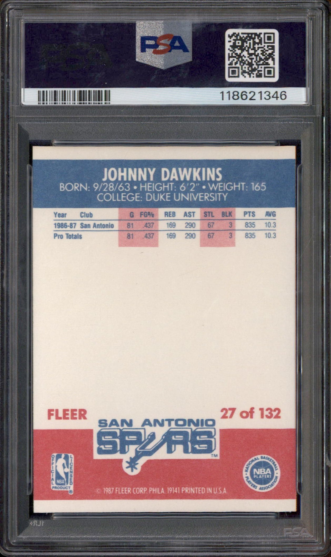 1987-88 Fleer #27 Johnny Dawkins RC PSA 8
