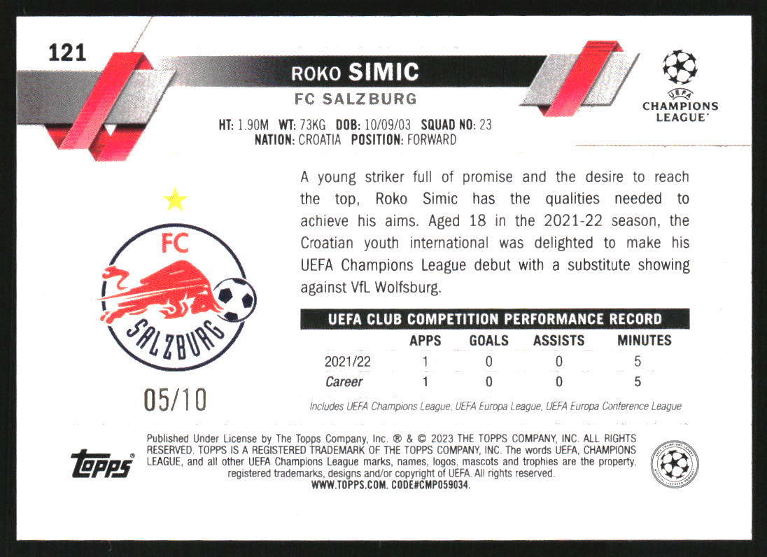2022-23 Topps UEFA Club Competitions Icy Black #121 Roko Simic RC /10