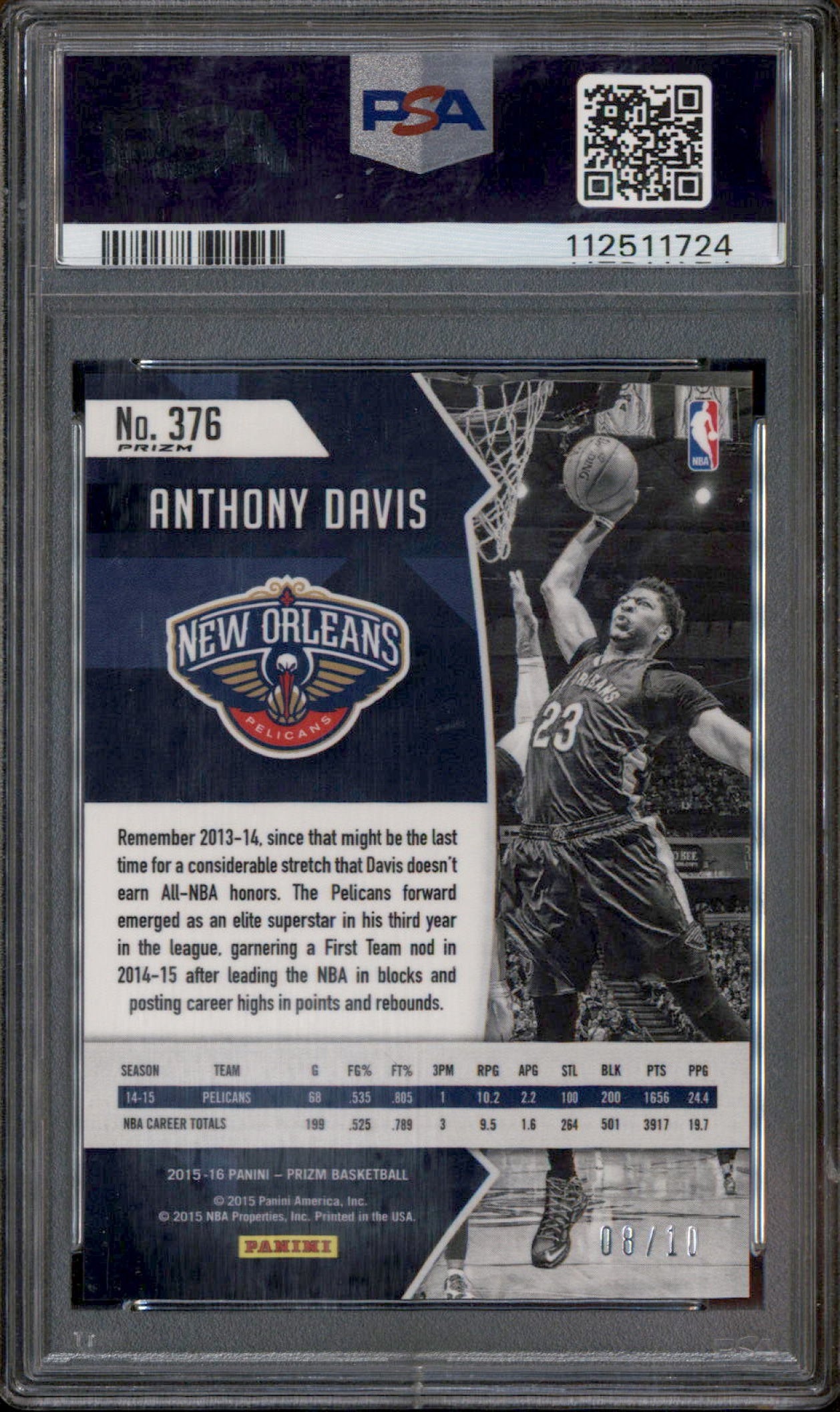 2015-16 Panini Prizm Gold Prizms #376 Anthony Davis /10 PSA 9