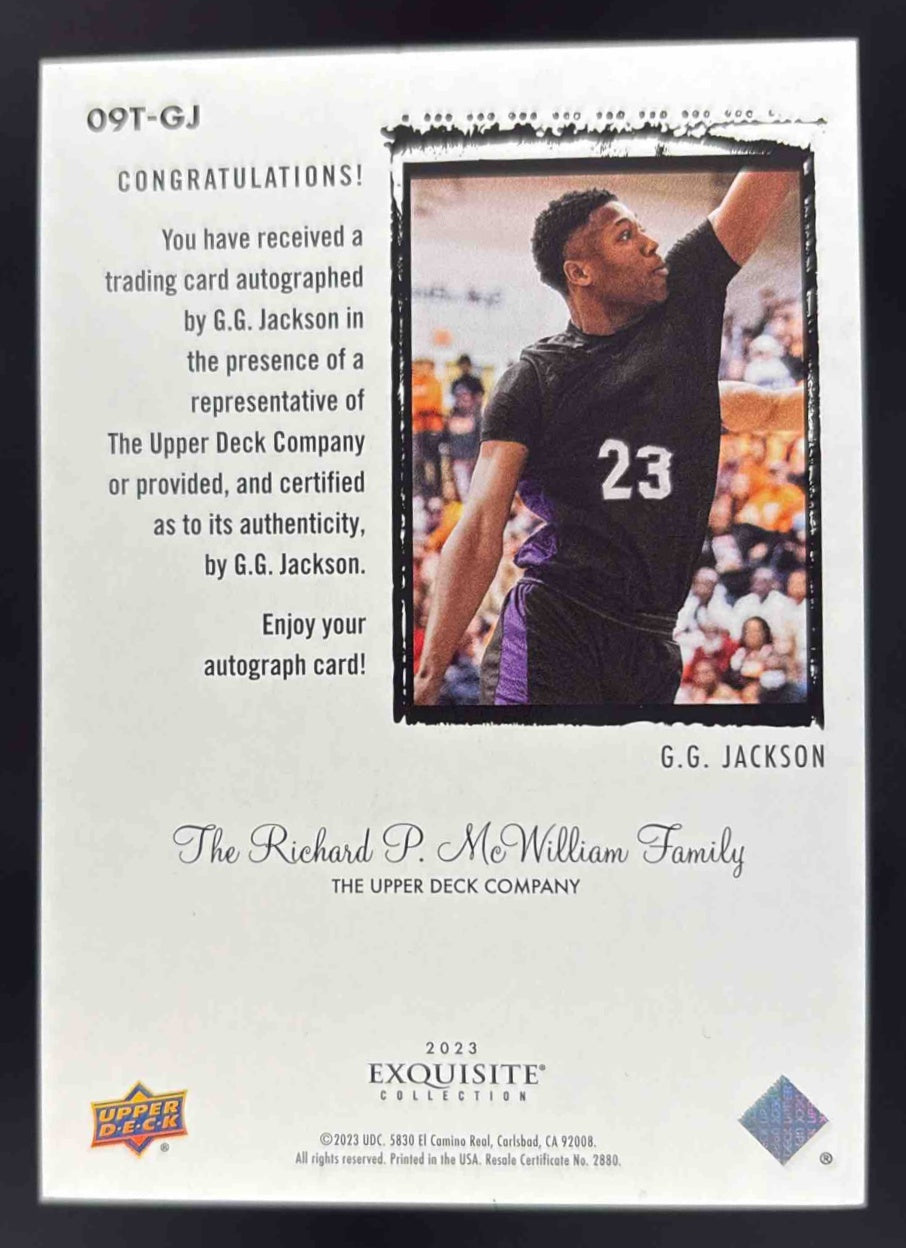 2023 Goodwin Champions Exquisite Collection 09 Rookie G.G. Jackson RC Auto /49