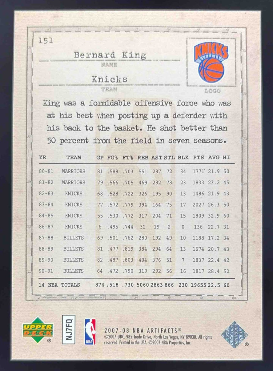 2007-08 Upper Deck Artifacts Copper #151 Bernard King League Leaders /10