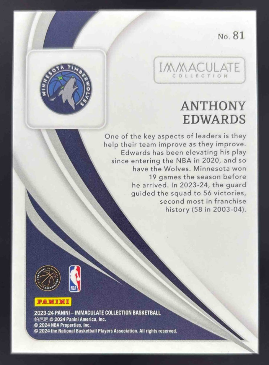2023-24 Panini Immaculate Blue #81 Anthony Edwards /25