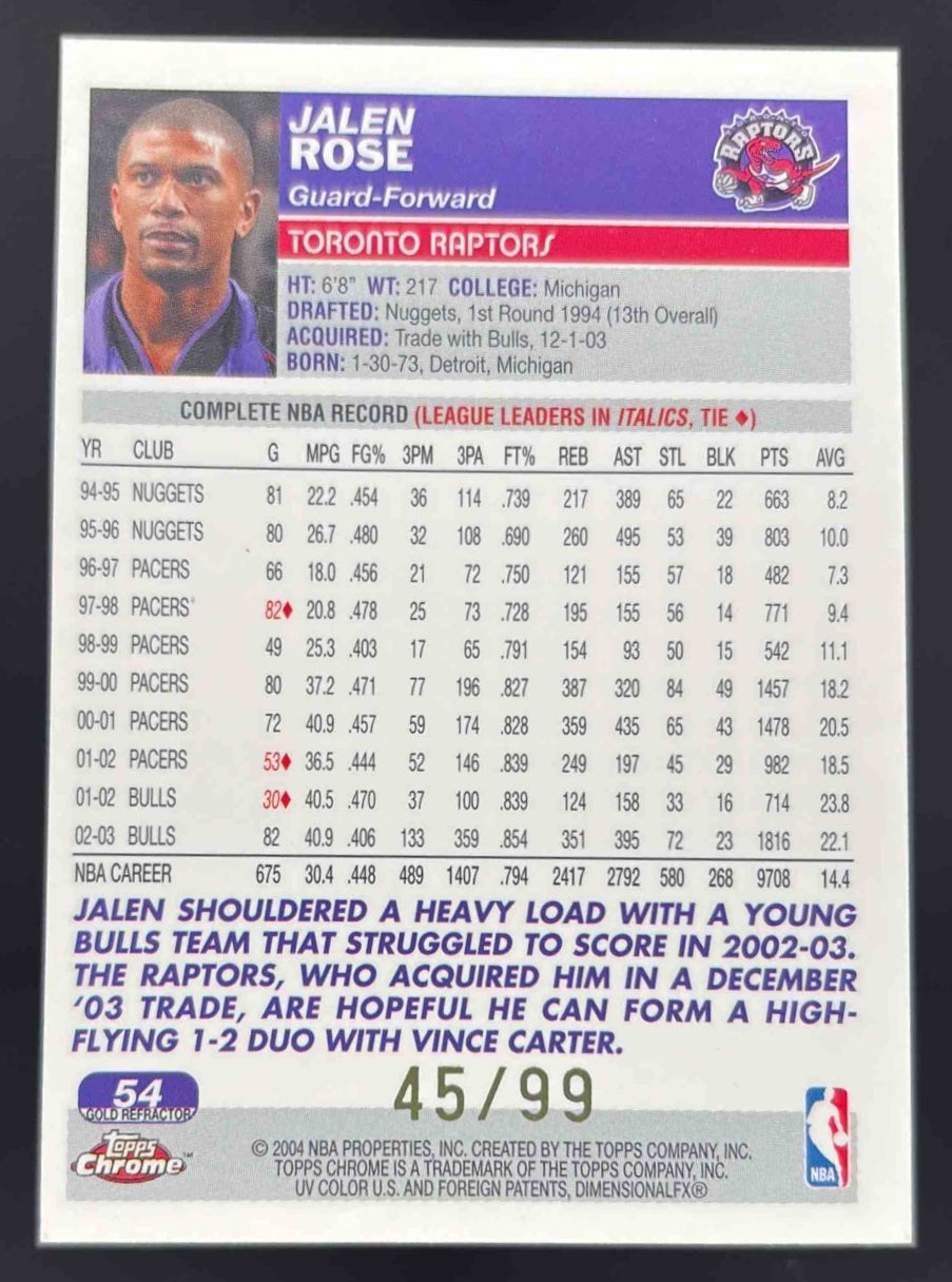 2003-04 Topps Chrome Refractors Gold #54 Jalen Rose /99