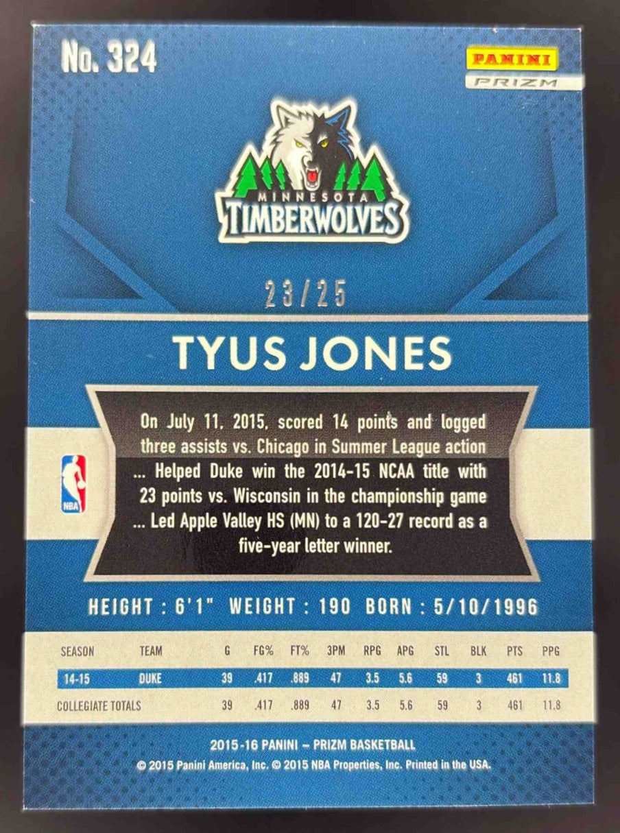 2015-16 Panini Prizm Mojo Prizms #324 Tyus Jones RC /25