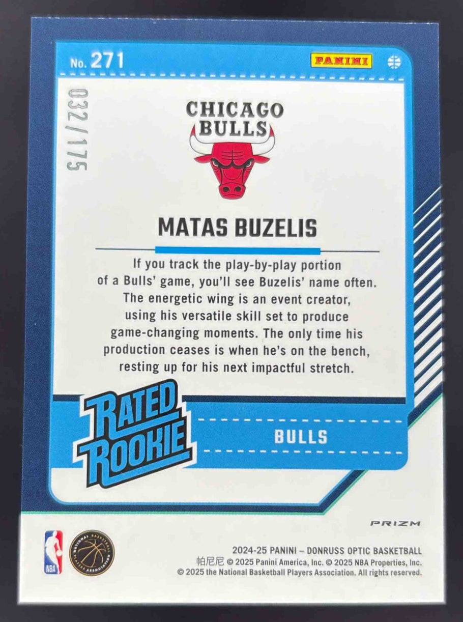 2024-25 Panini Donruss Optic Rated Rookie Orange #271 Matas Buzelis RC /175