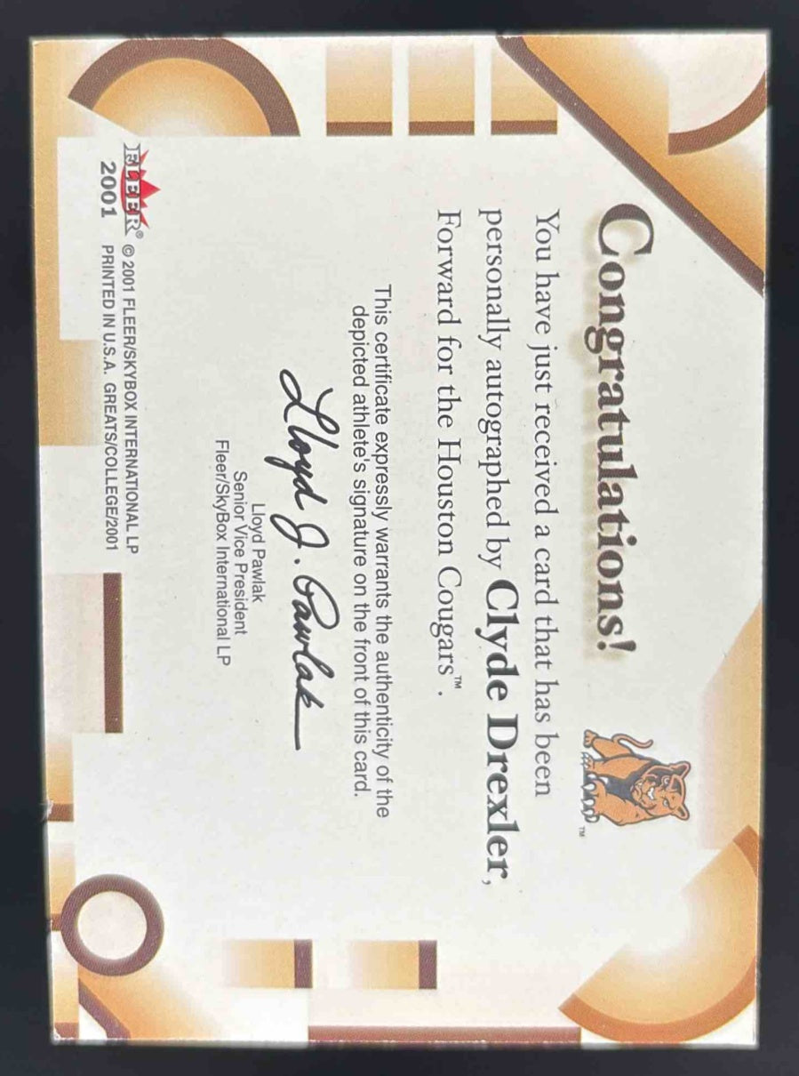 2001-02 Fleer Greats of the Game Autographs #NNO Clyde Drexler Auto /200