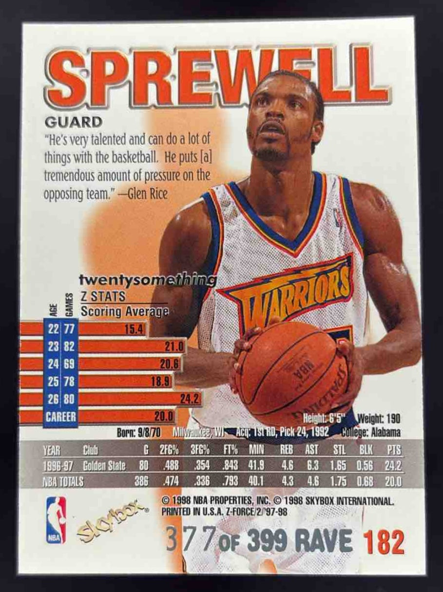 1997-98 Skybox Z-Force Rave #182 Latrell Sprewell /399