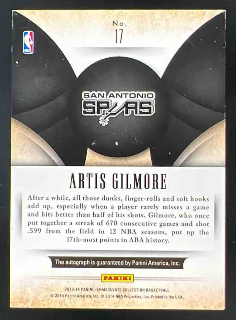 2013-14 Panini Immaculate Collection Scorers Club #17 Artis Gilmore Auto /60