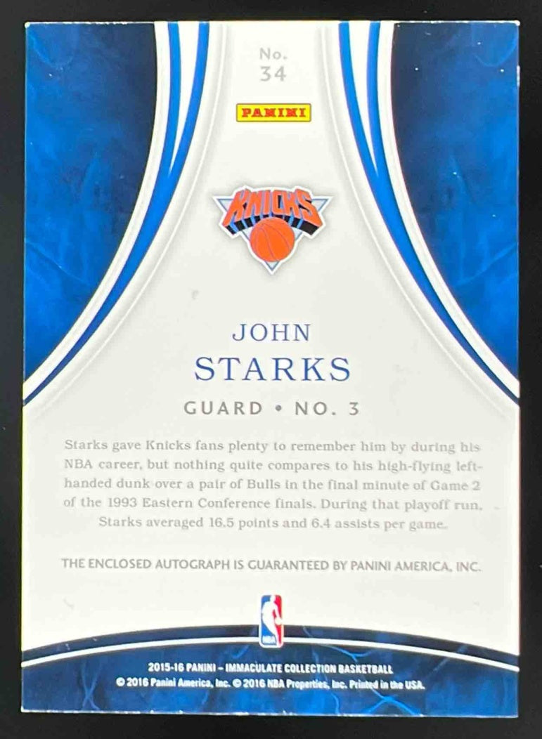 2015-16 Panini Immaculate Collection Autographs Bronze #34 John Starks Auto /75