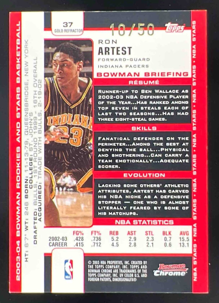 2003-04 Bowman Rookies & Stars Chrome Refractors Gold #37 Ron Artest /50