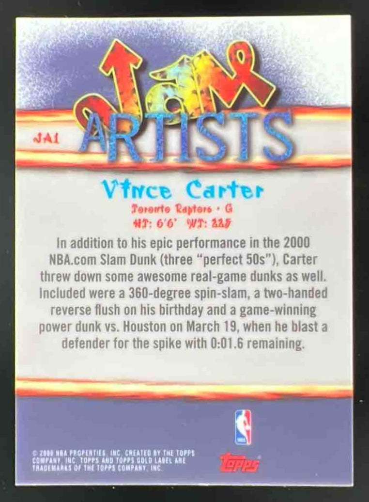 2000-01 Topps Gold Label Jam Artists #JA1 Vince Carter