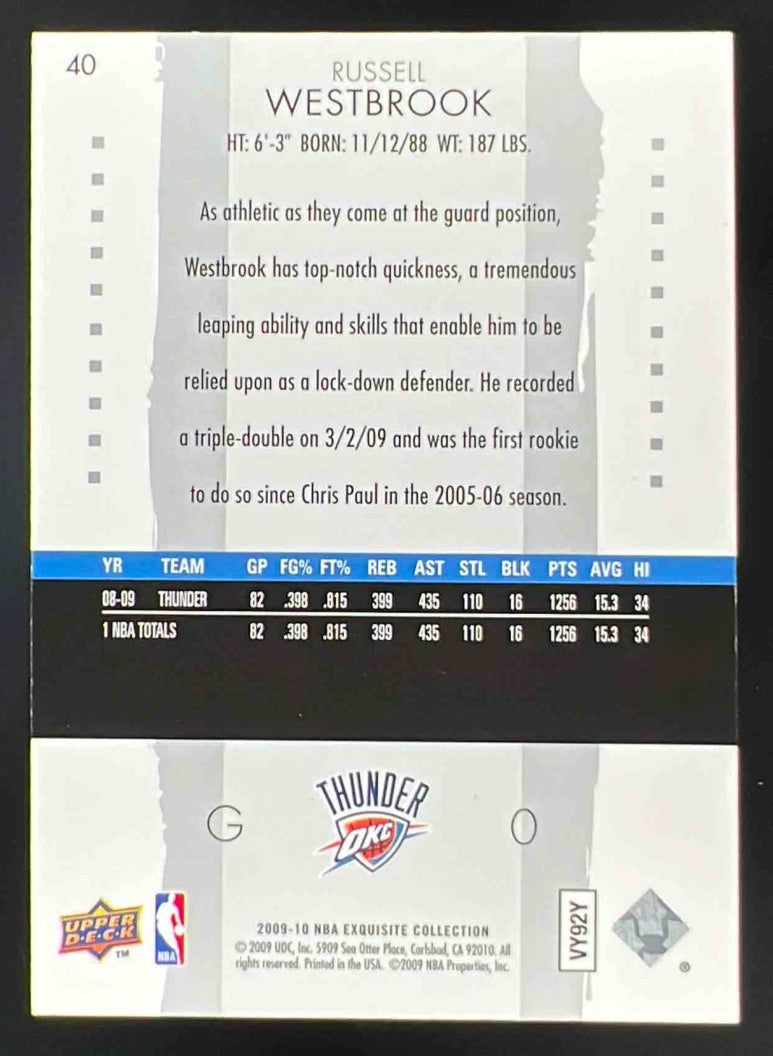 2009-10 Upper Deck Exquisite Collection #40 Russell Westbrook /199