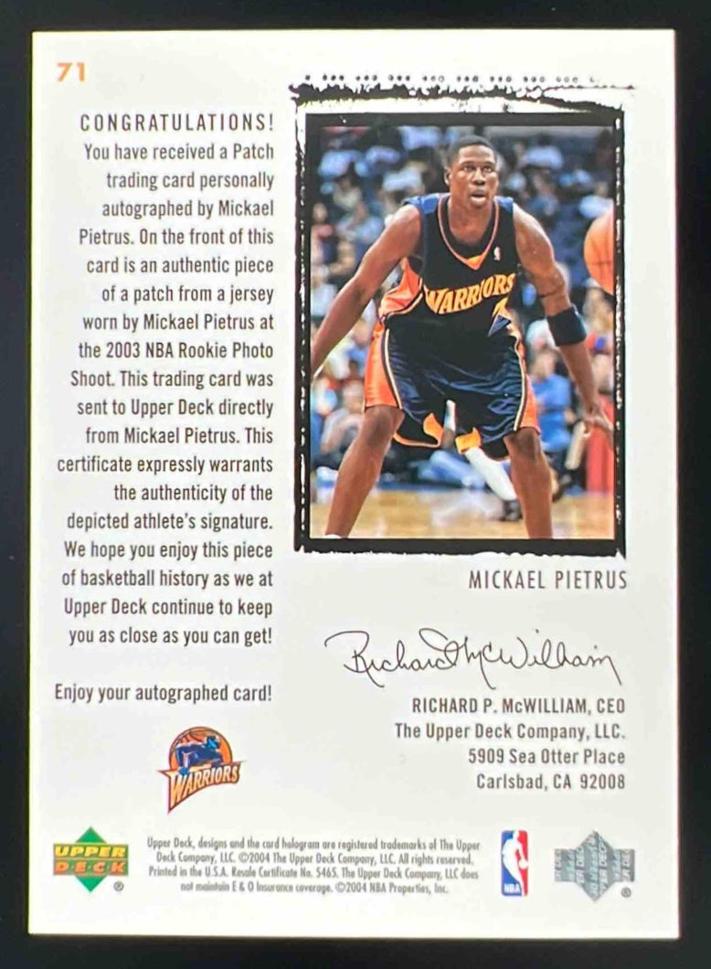 2003-04 Upper Deck Exquisite Collection #71 Mickael Pietrus RC Auto /225
