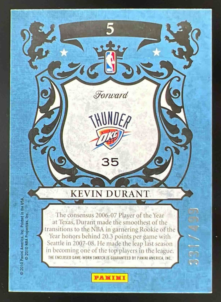 2009-10 Panini Crown Royale Royalty Materials #5 Kevin Durant /499