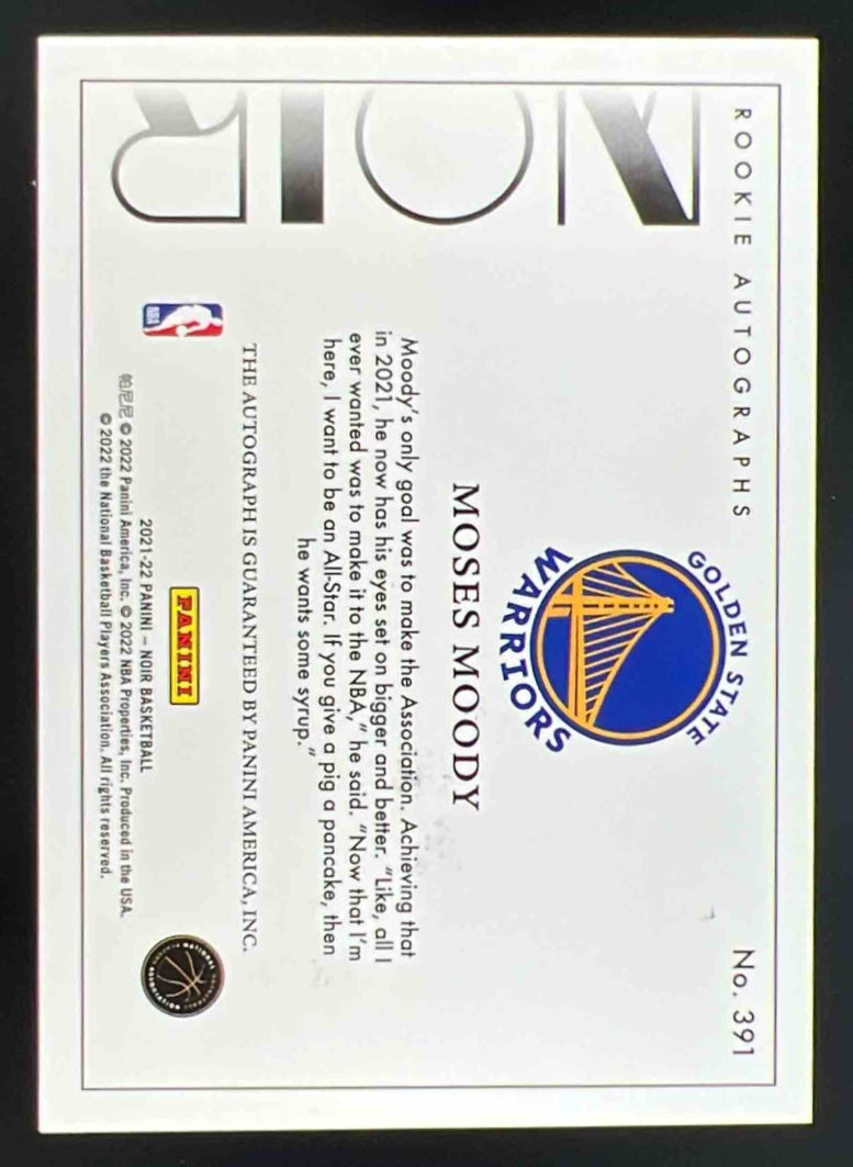 2021-22 Panini Noir #391 Moses Moody RC Auto /99