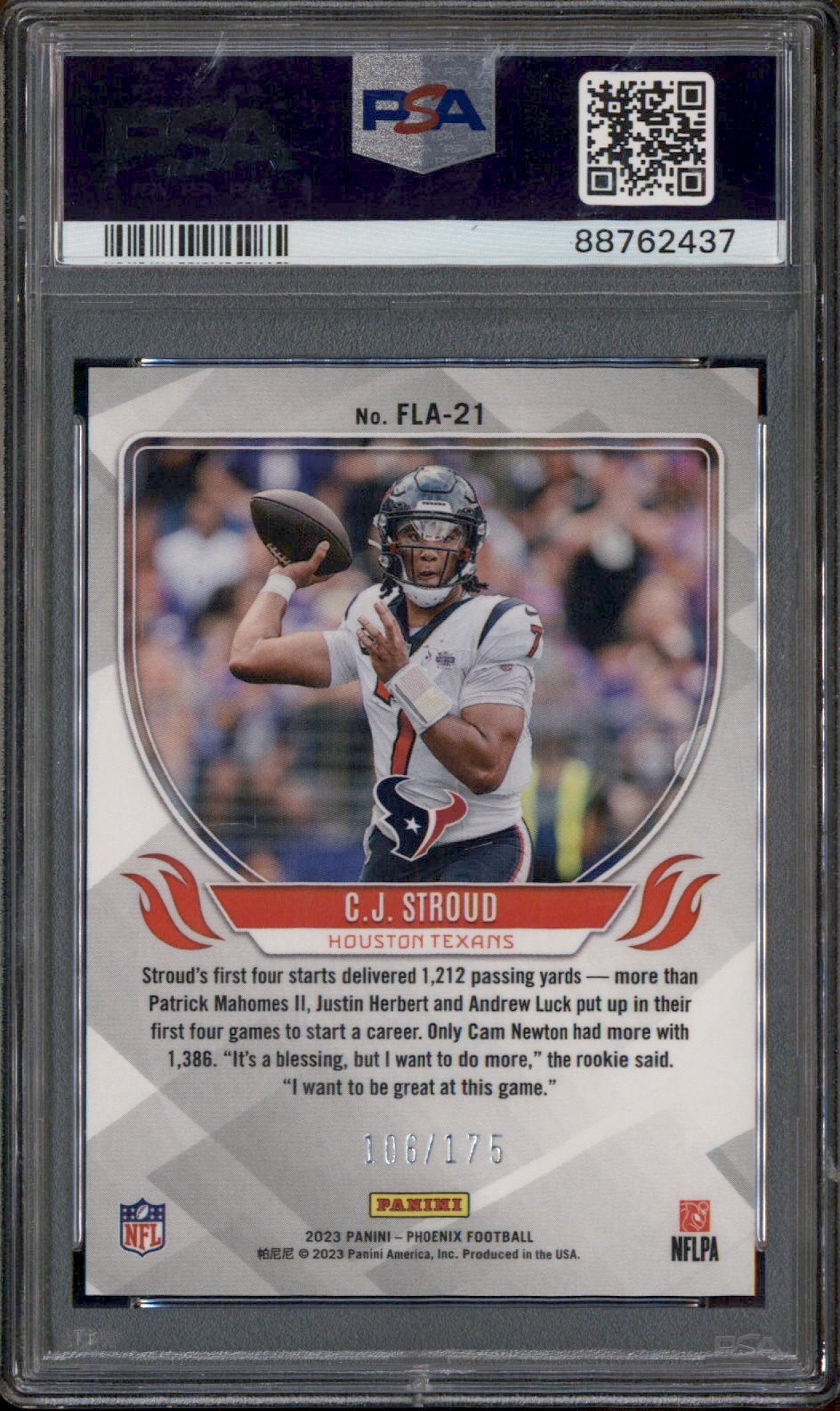 2023 Panini Phoenix Flame Throwers Pink #FLA-21 C.J. Stroud RC /175 PSA 10