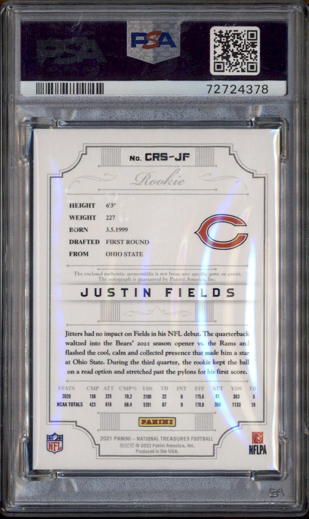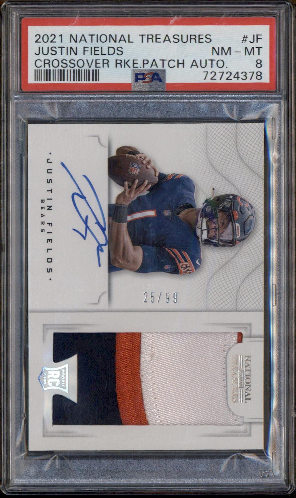 2021 National Treasures Crossover Rookie Patch Auto Justin Fields RC /99 PSA 8