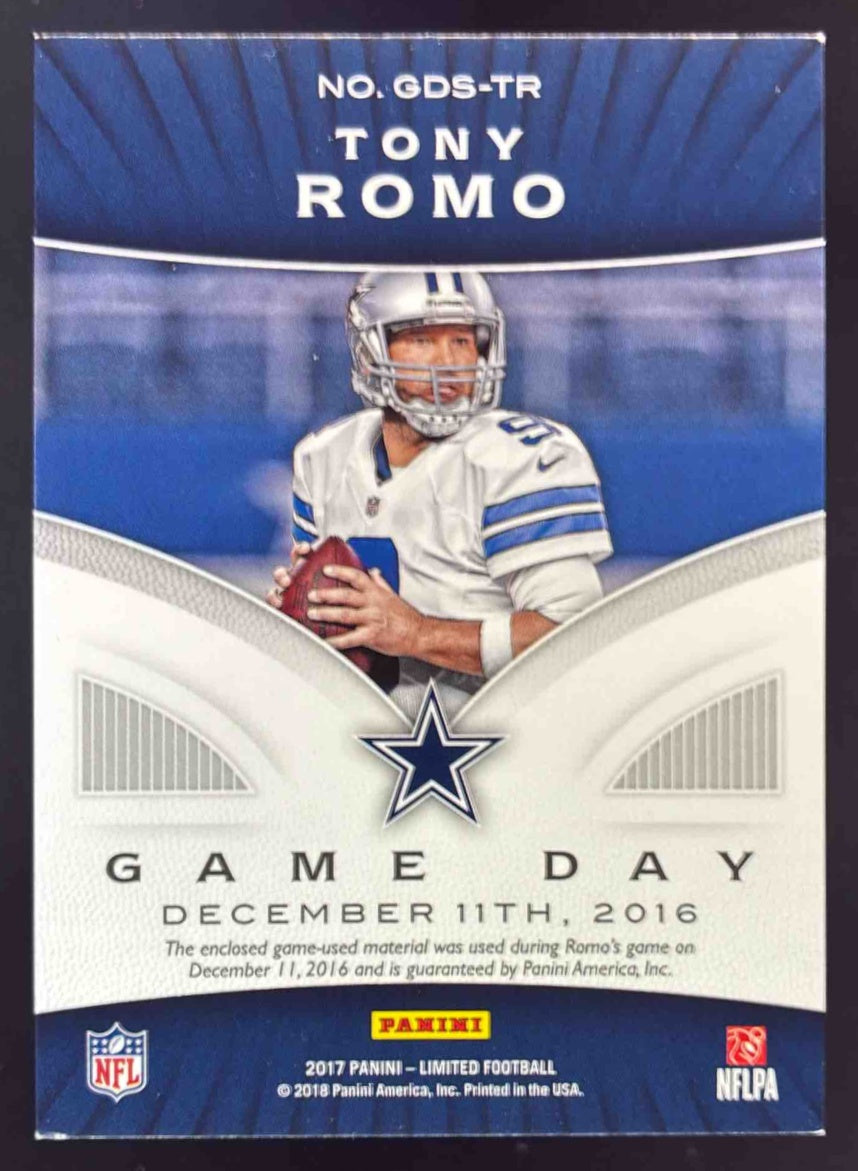 2017 Panini Limited Game Day Swatches Prime #GDS-TR Tony Romo /25