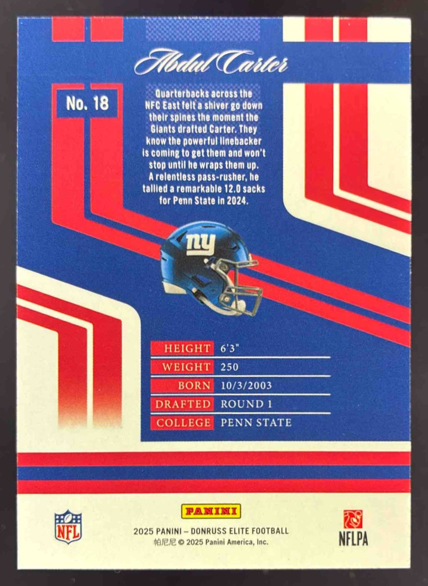 2025 Panini Donruss Elite 2007 Elite Rookies Gold #18 Abdul Carter /10