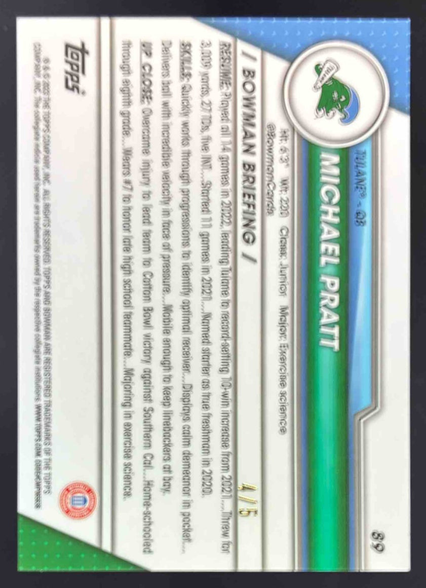 2023 Bowman University Chrome Red Shimmer Refractor #89 Michael Pratt /5