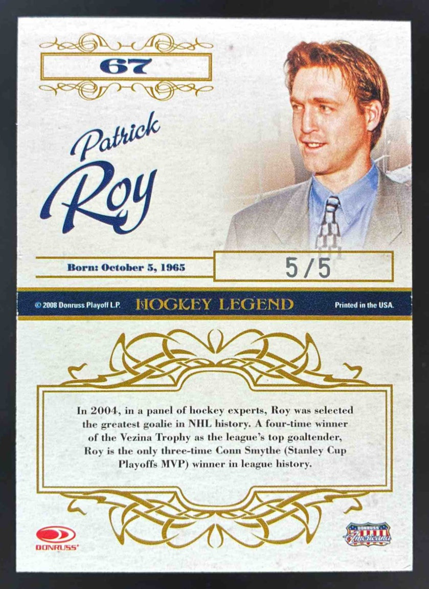 2008 Donruss Celebrity Cuts Autograph #67 Patrick Roy Auto /5