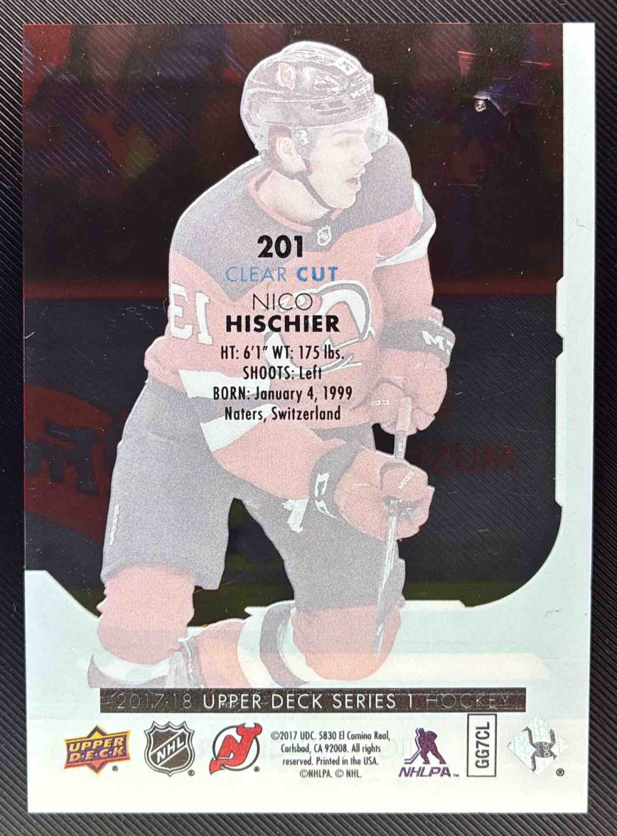 2017-18 Upper Deck Clear Cut #201 Nico Hischier Young Guns RC