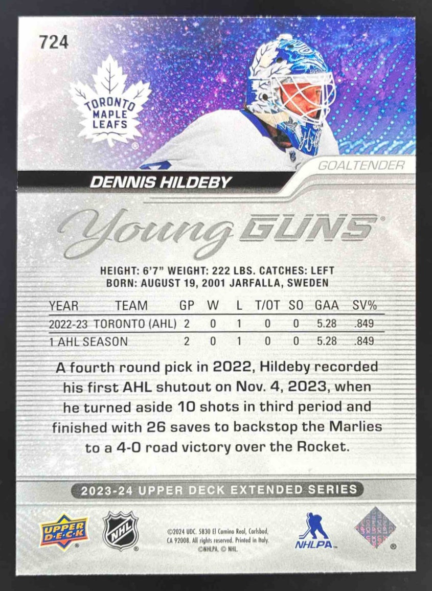 2023-24 Upper Deck UD Exclusives #724 Dennis Hildeby Young Guns RC /100