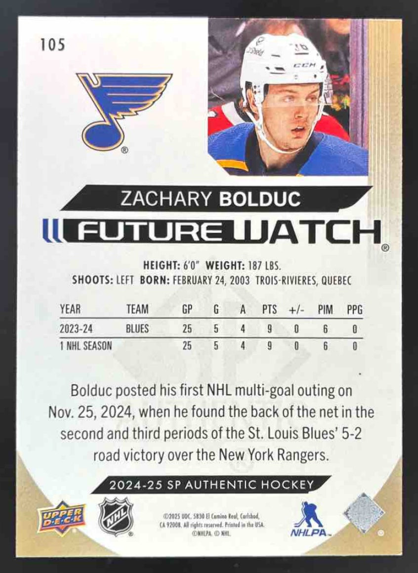 2024-25 Upper Deck SP Authentic Limited Gold #105 Zachary Bolduc /99