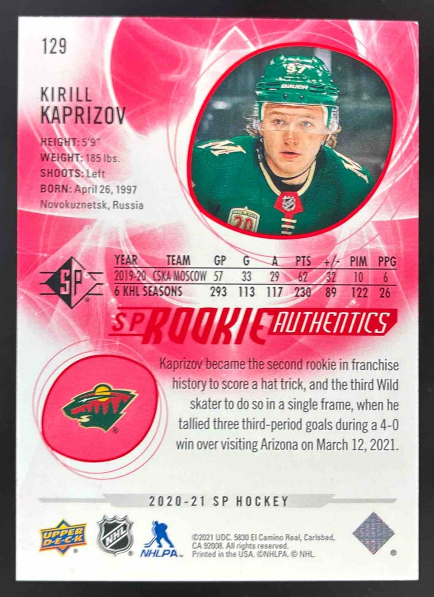 2020-21 SP Red #129 Kirill Kaprizov RC /799