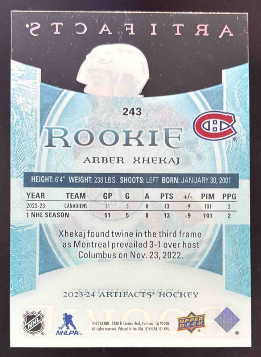 2023-24 Upper Deck Artifacts Clear Cut Rookies #243 Arber Xhekaj Rookie