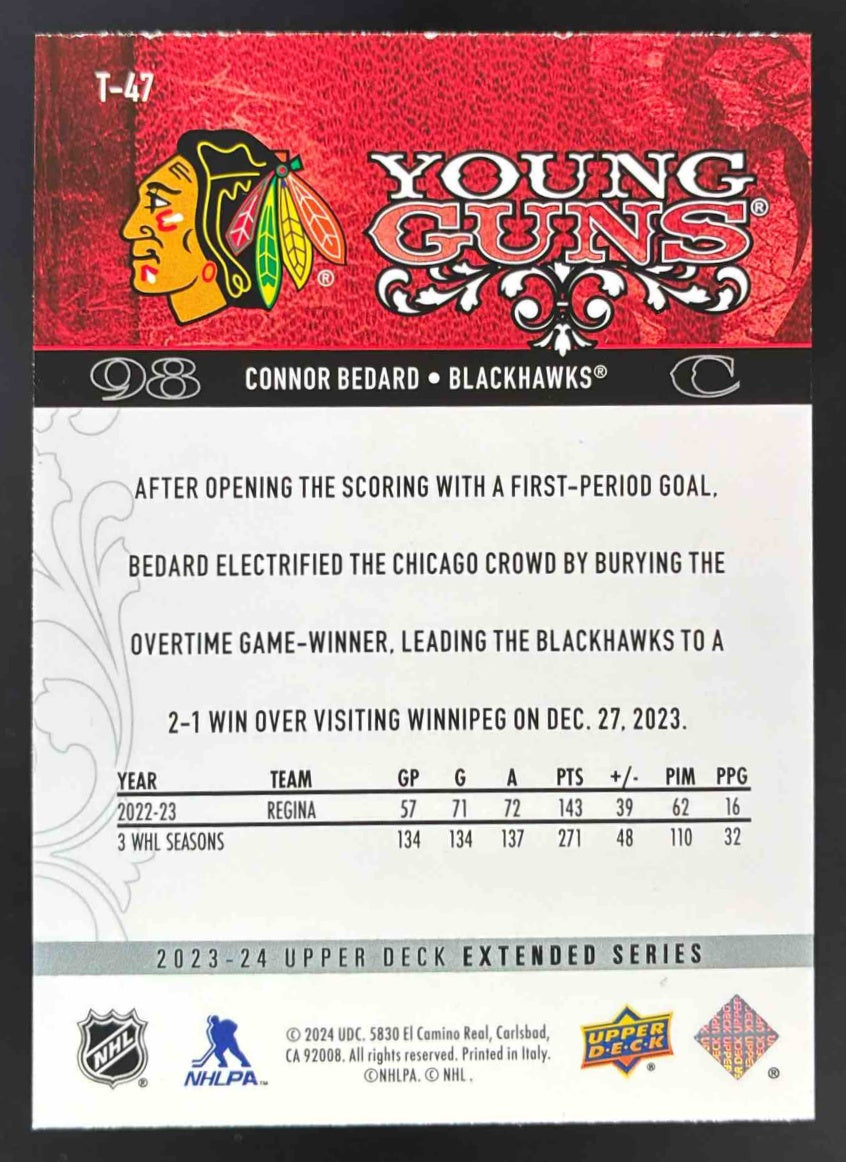 2023-24 Upper Deck Extended Series Retro #T-47 Connor Bedard Young Guns RC