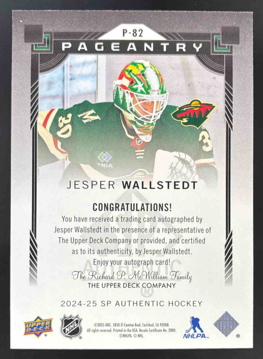 2024-25 Upper Deck SP Authentic Pageantry Jesper Wallstedt Autograph Auto