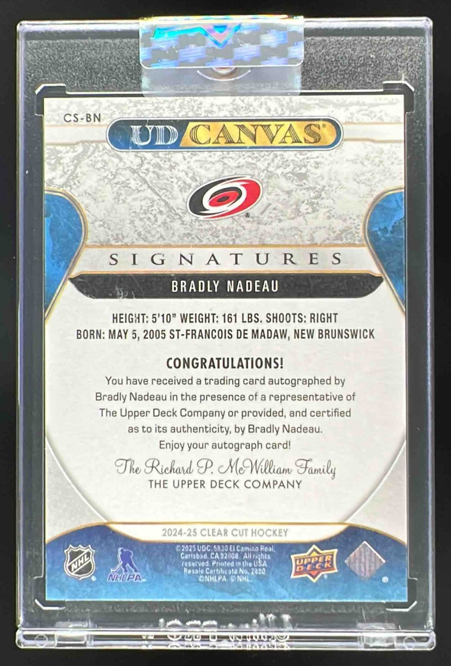 2024-25 Upper Deck Clear Cut Canvas Signatures #CS-BN Bradly Nadeau Auto