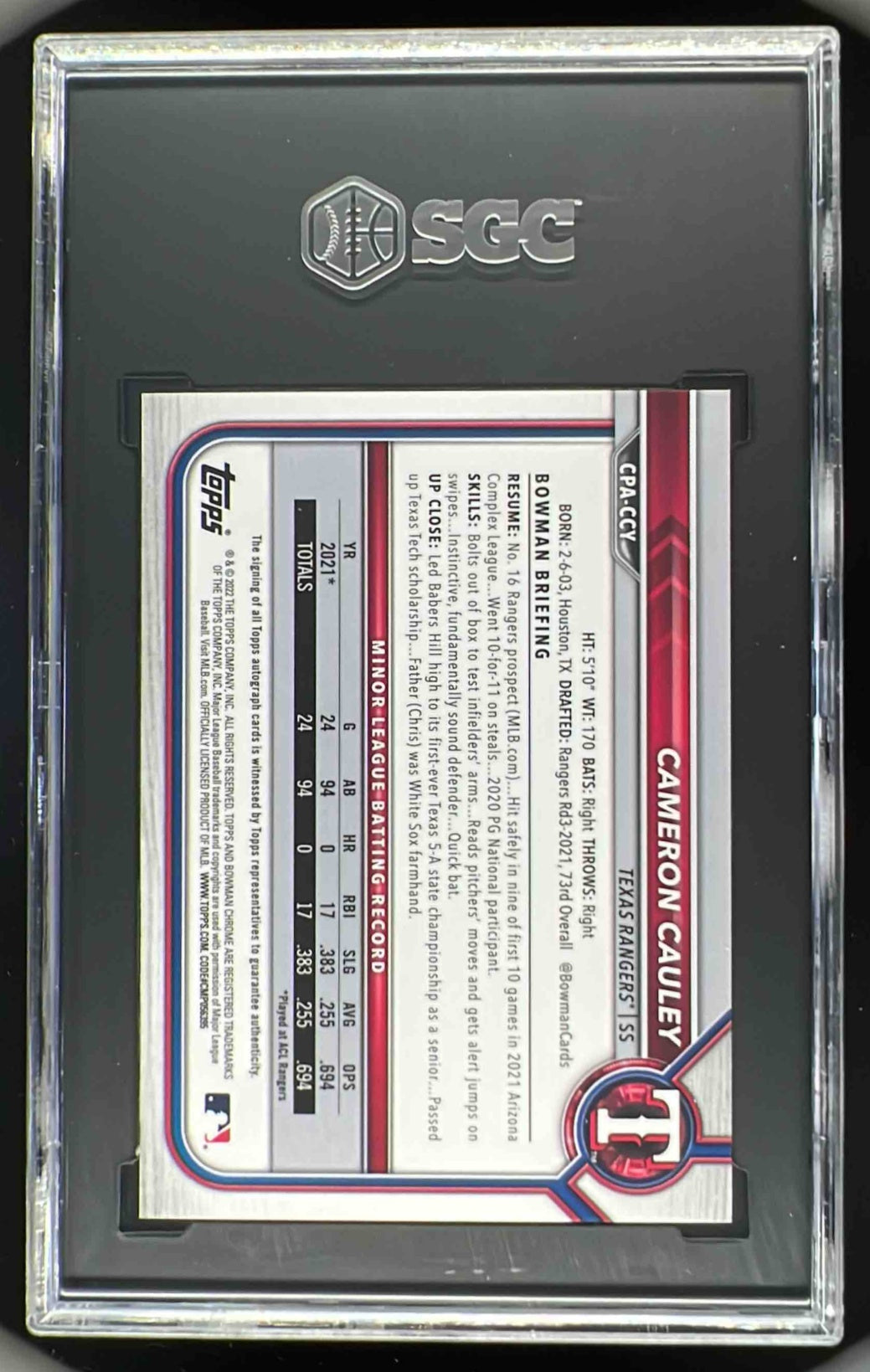 2022 Bowman Chrome Purple Refractor #CPA-CCY Cameron Cauley Auto /250 SGC 9.5