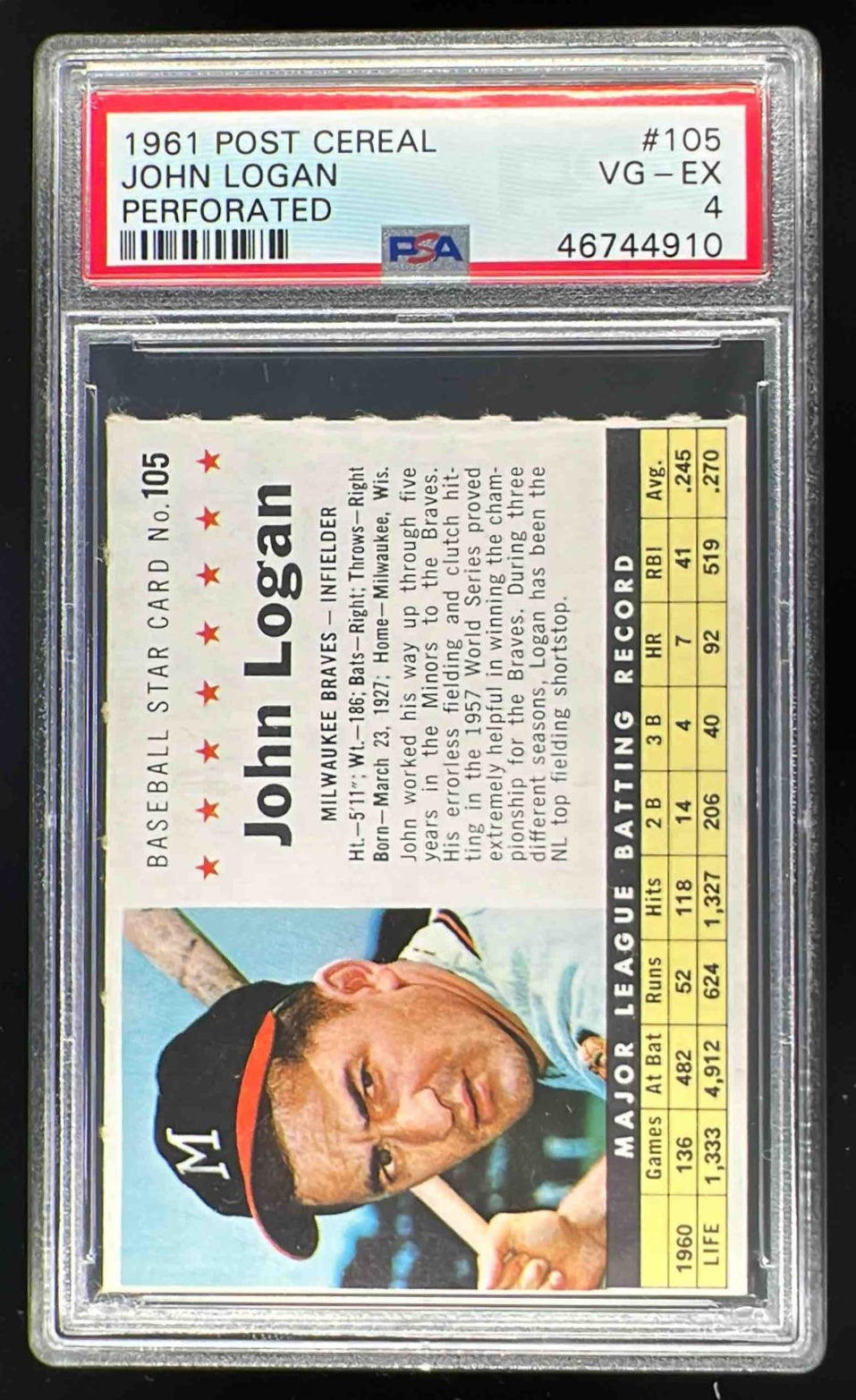1961 Post Cereal Perforated #105 John Logan PSA 4