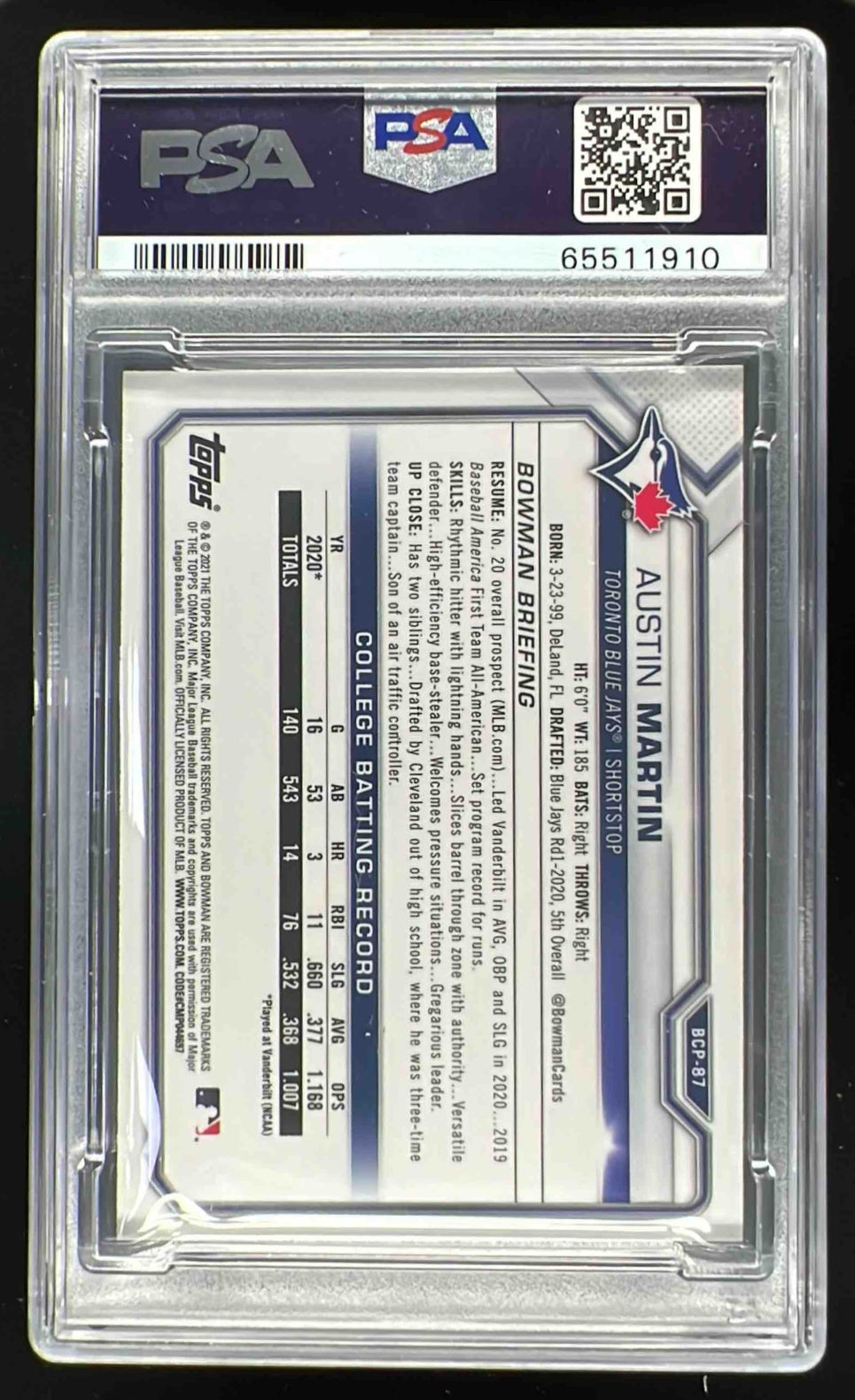 2021 Bowman Chrome Prospects Mega Box #BCP-87 Austin Martin PSA 9