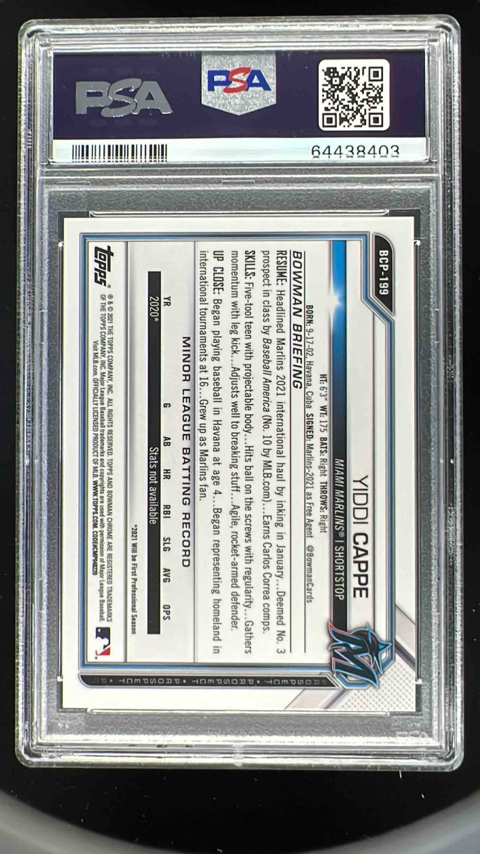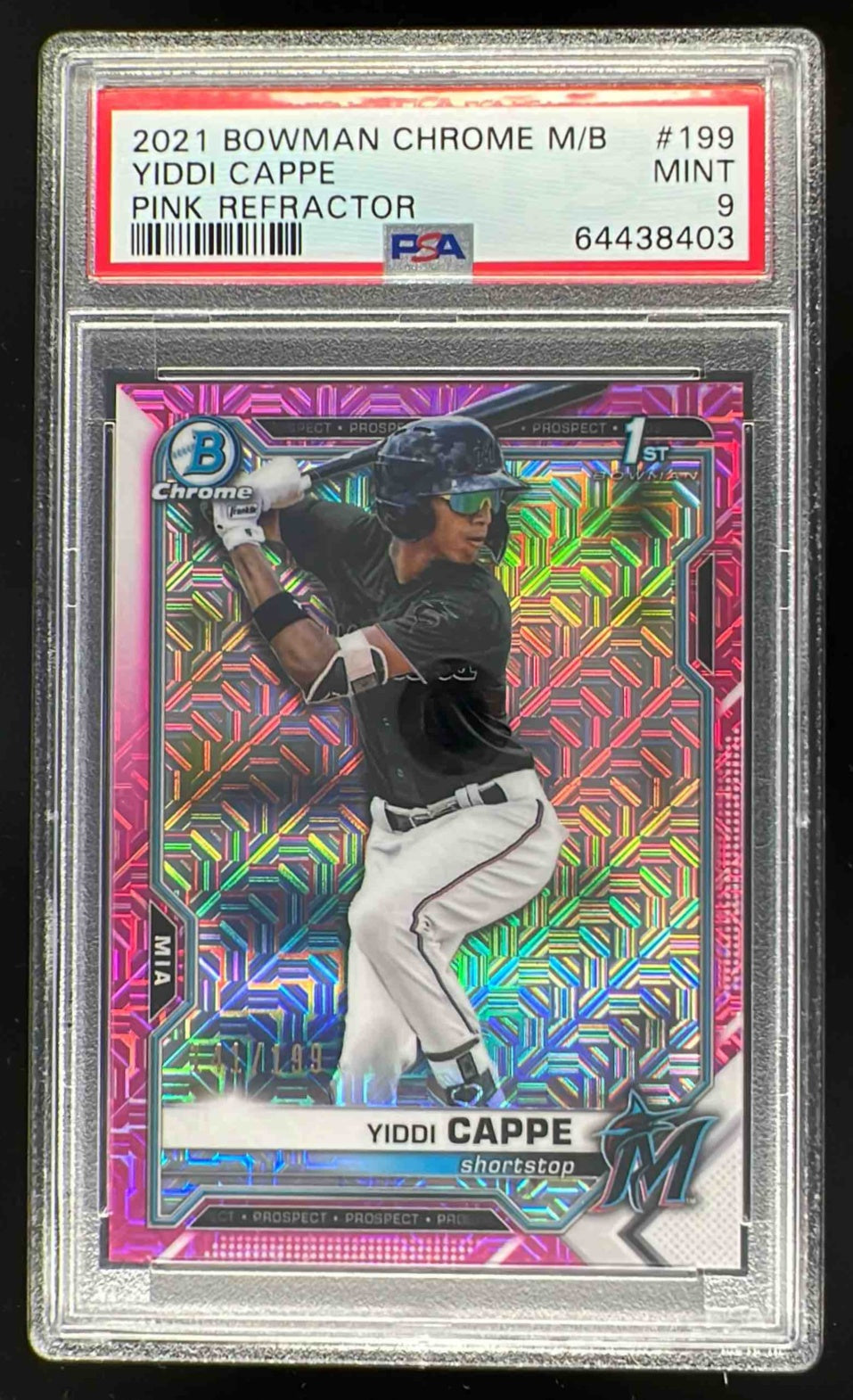 2021 Bowman Chrome Mega Box Pink Refractor #BCP-199 Yiddi Cappe RC /199 PSA 9