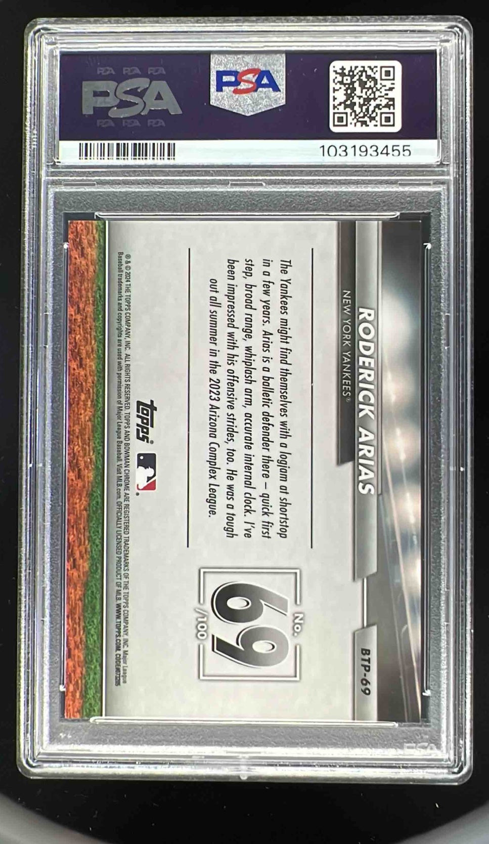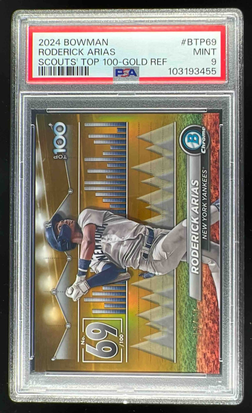 2024 Bowman Scouts' Top 100 Gold Refractor #BTP-69 Roderick Arias /50 PSA 9
