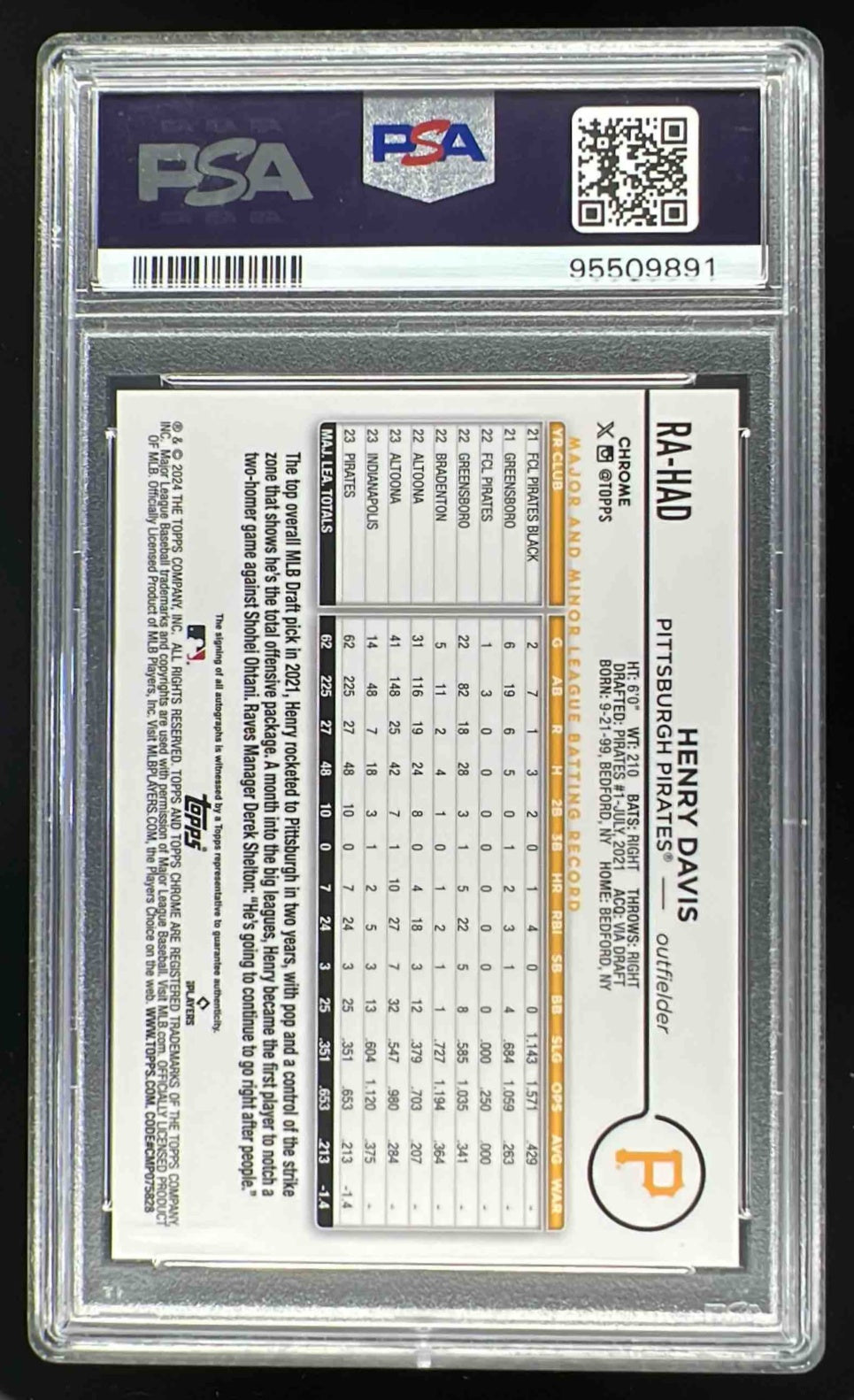 2024 Topps Chrome Rookie Autographs #RA-HAD Henry Davis RC Auto PSA 10