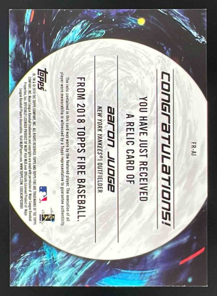 2018 Topps Fire Fire Relics #FR-AJ Aaron Judge