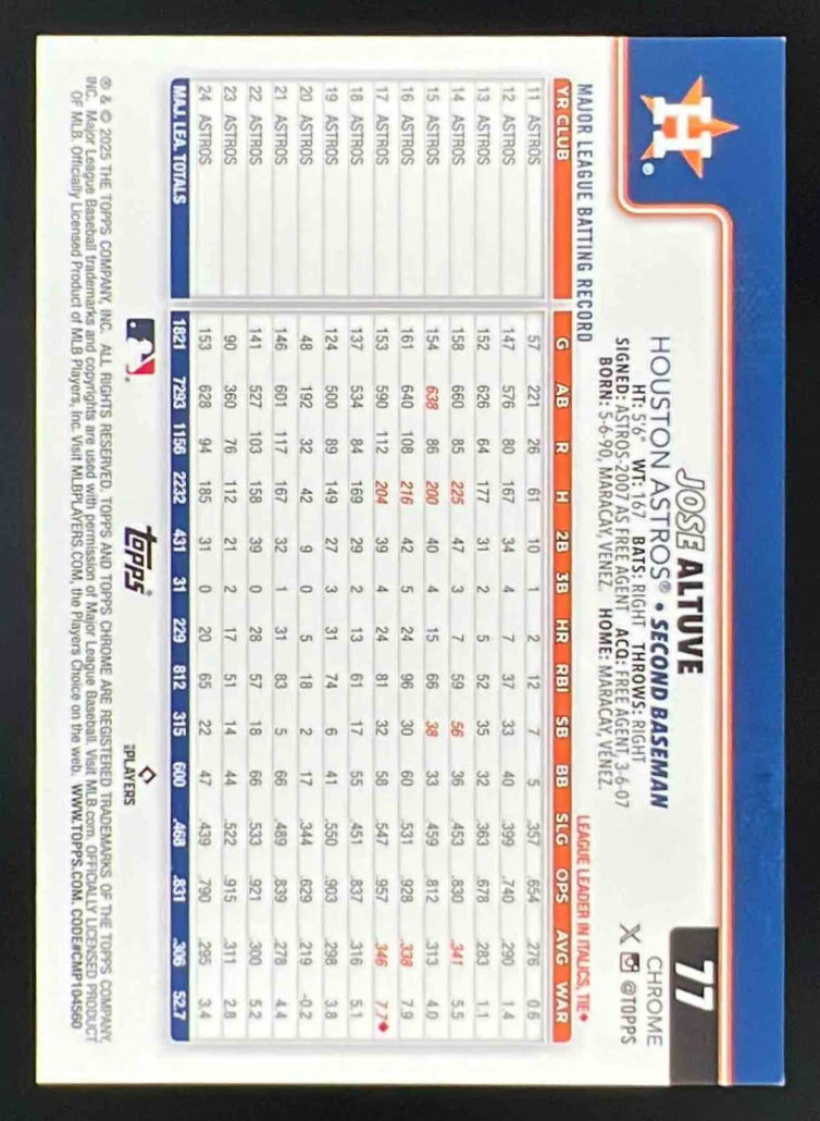 2025 Topps Chrome Image Variation Gold Speckle Refractor #77 Jose Altuve /50