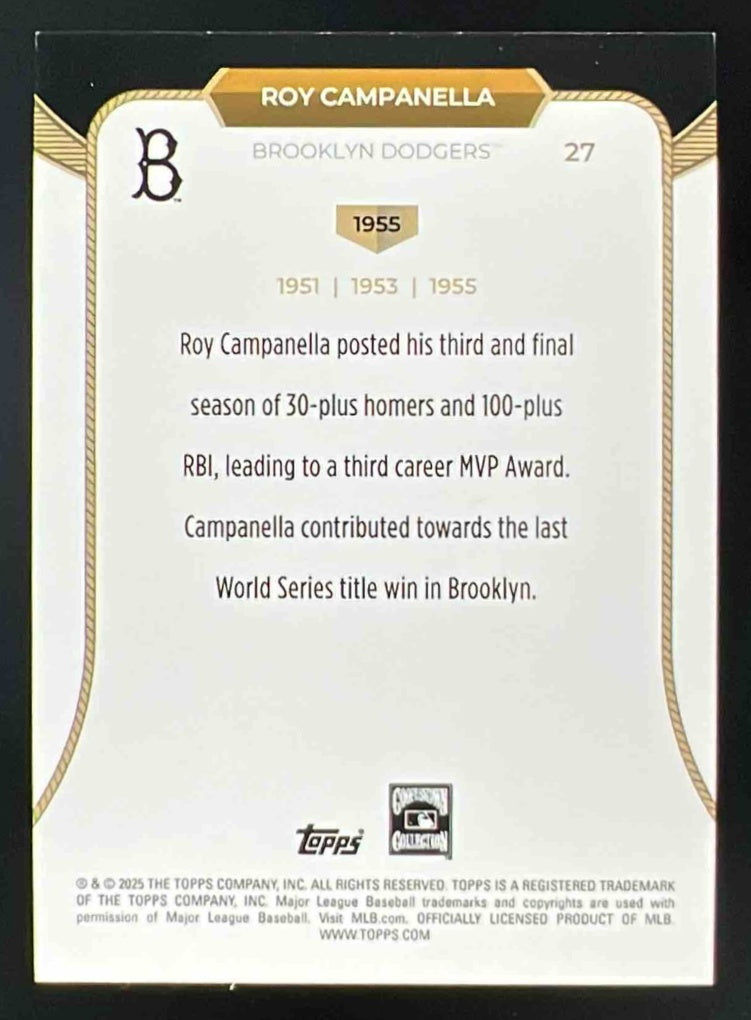 2025 Topps Welcome to the Club: 3-X MVP Black Foil #27 Roy Campanella (1955) /10