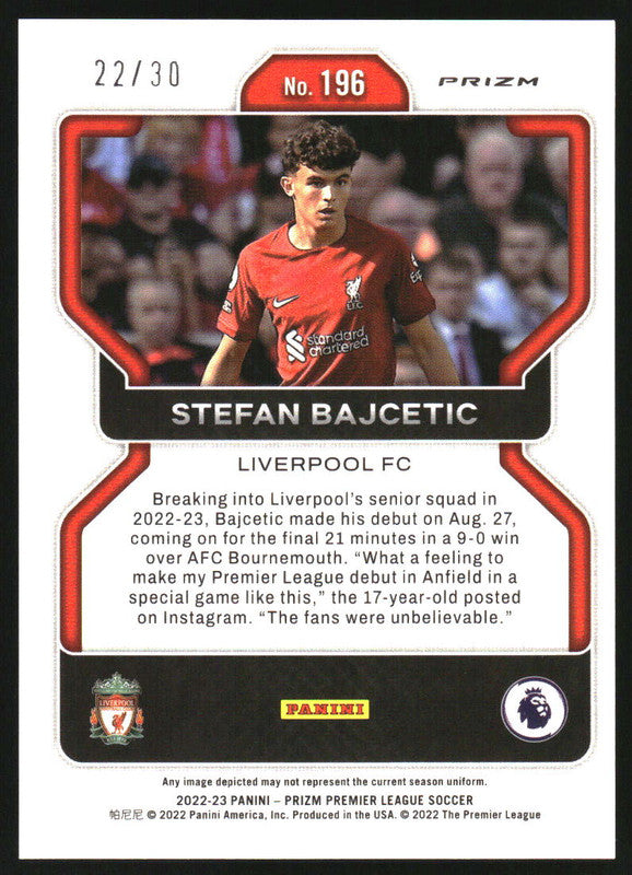 2022-23 Panini Prizm Premier League Choice Red Stefan Bajcetic RC /30
