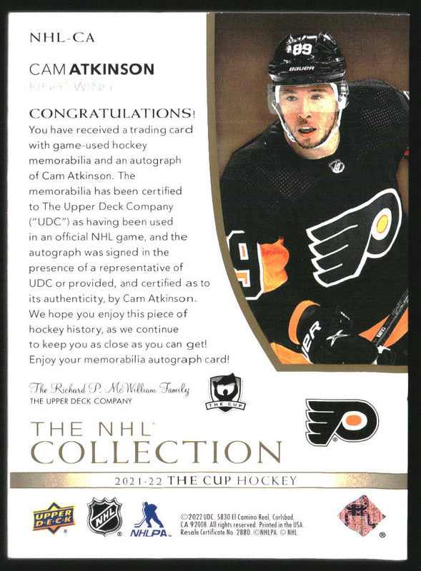 2021-22 The Cup The NHL Collection Autographs Cam Atkinson Auto /25