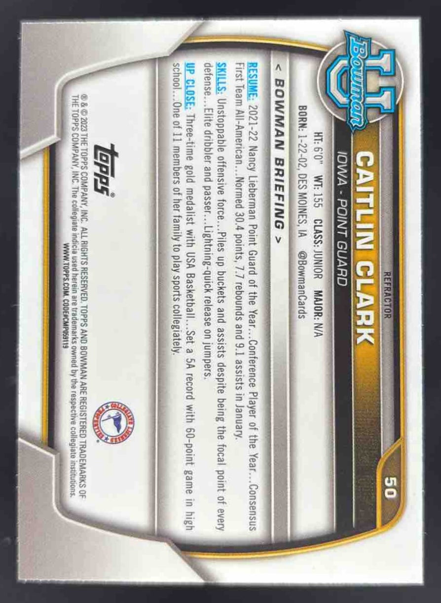 2022-23 Bowman Chrome University Refractor #50 Caitlin Clark