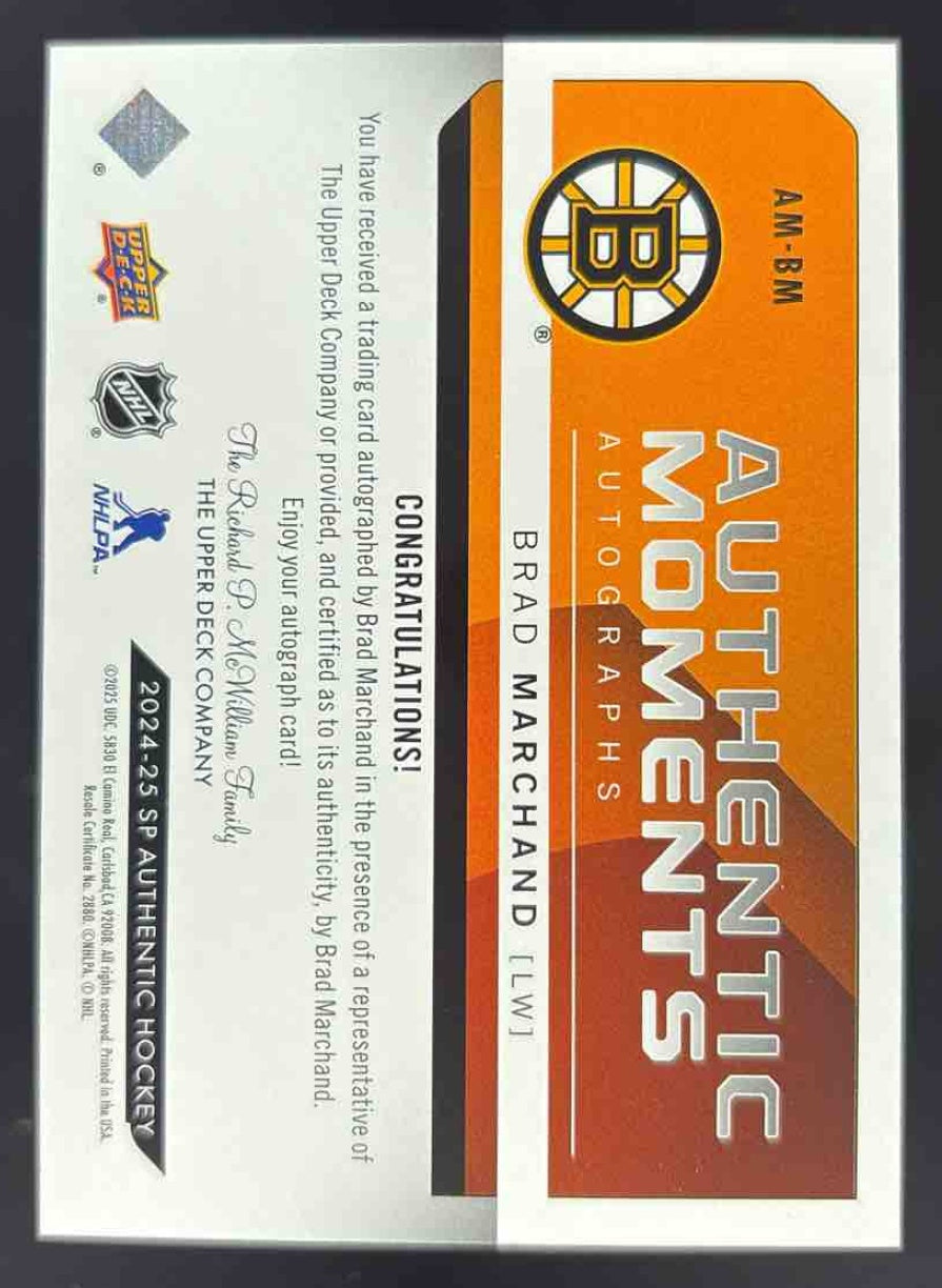 2024-25 SP Authentic Authentic Moments Autographs #AM-BM Brad Marchand Auto
