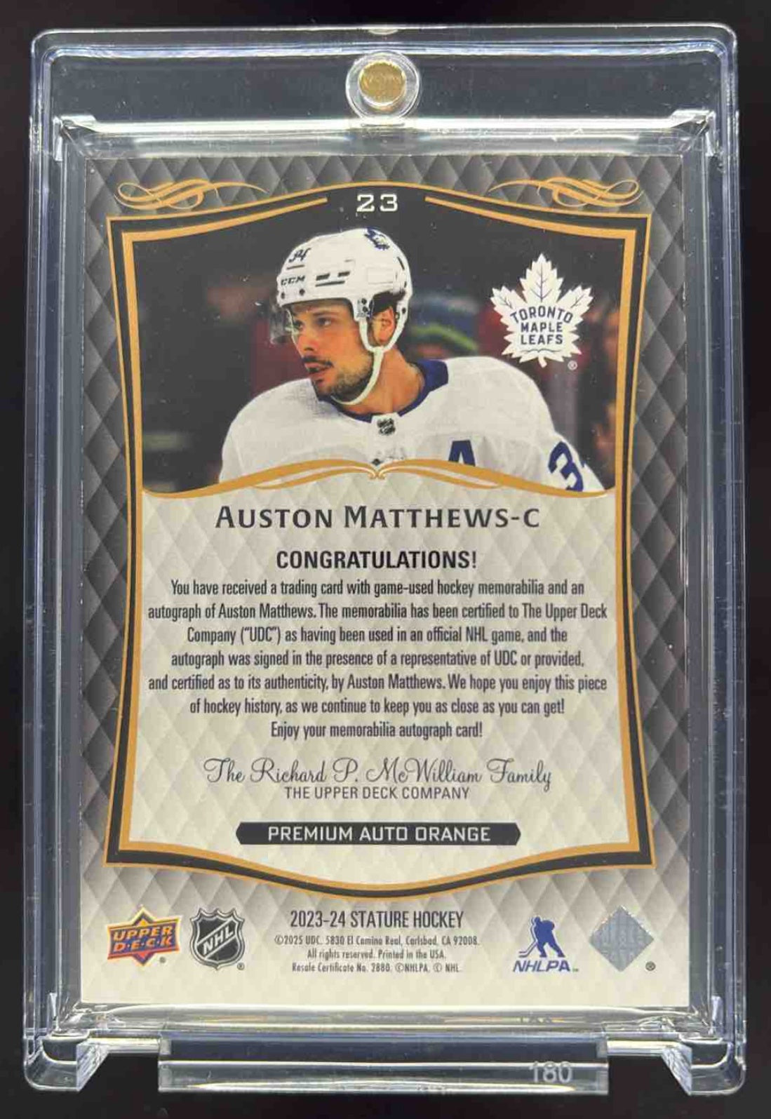 2024-25 Upper Deck Stature Memorabilia Orange #23 Auston Matthews Auto /15