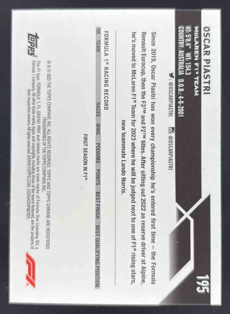 2023 Topps Chrome Sapphire Formula 1 #195 Oscar Piastri RC