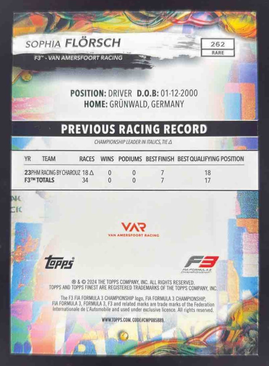 2024 Topps Finest Formula 1 Black Refractors #262 Sophia Florsch Rare /15