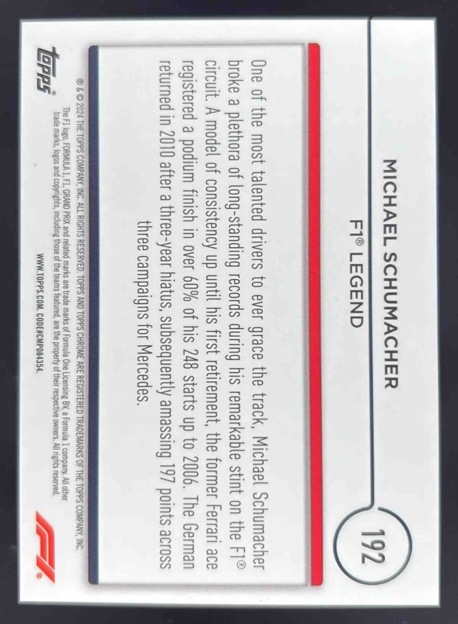 2024 Topps Chrome Formula 1 Black Refractors #192 Michael Schumacher Legend /10